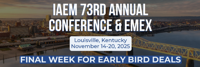 | There is only one week left to save on your registration for the 73rd IAEM Annual Conference & EMEX. After next Friday, costs will increase, so don’t wait until then to lock in your savings. Even if you cannot pay right now, select the “pay by check” option so you can take advantage of these registration deals. EARLY BIRD EXCLUSIVE: To sweeten the early bird deals, register before next week to get access to our Early Edition Speaker Series. These sessions are only available to those who register before October 10. Sessions begin on Oct. 14. |